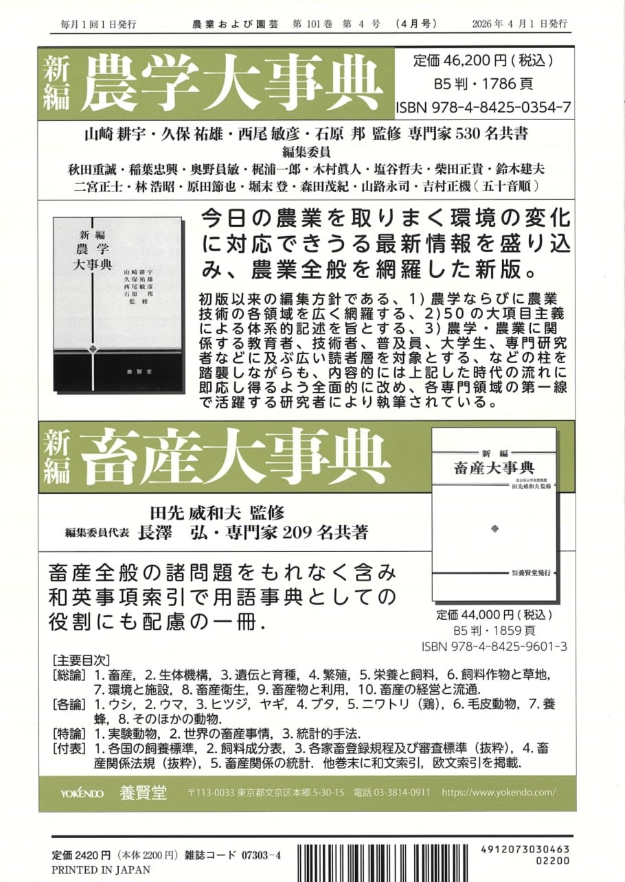 農業および園芸 2026年4月1日発売 第101巻 第4号