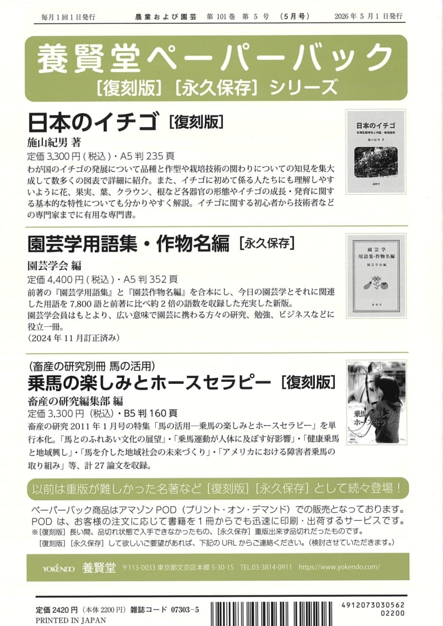 農業および園芸 2026年5月1日発売 第101巻 第5号